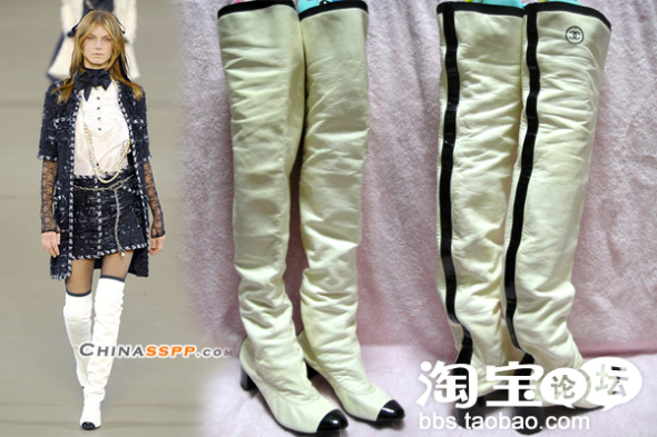 鞋跟7厘米,意大利制,2006年秋冬走秀款,此款惊艳米兰以及巴黎时装秀场上的过膝超长筒美靴,时尚杂志总编主推的永不过气的高贵经典款式,香奈儿品牌的灵魂设计,高级小羊皮与漆皮的完美结合,打造出人见人爱的此款美靴,靴子没有拉链,中高鞋跟,便于走路,是一款观赏性与实用性兼具的奢华美靴!搭配超短迷你羊毛裙与风衣,尽显气质出众的时尚之风,爱纱的超经典收藏(绝不出售的哦!)爱纱败了22800元