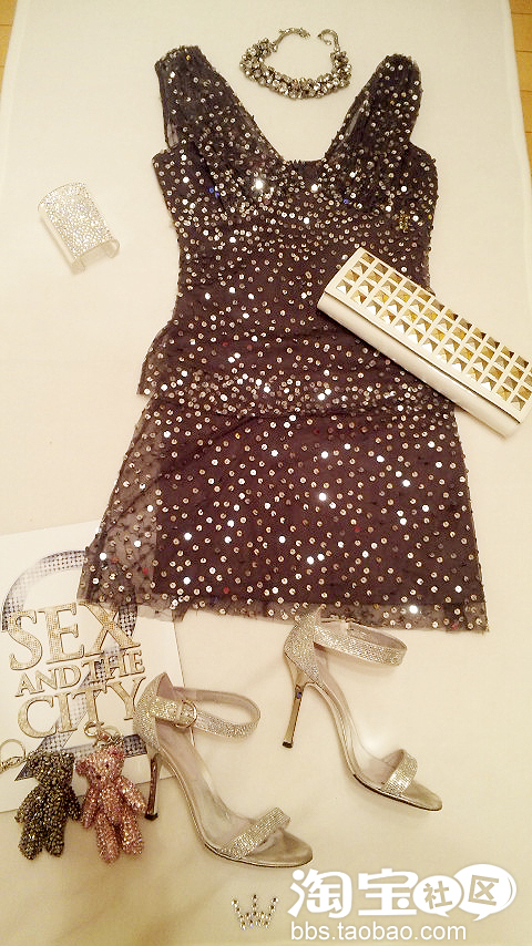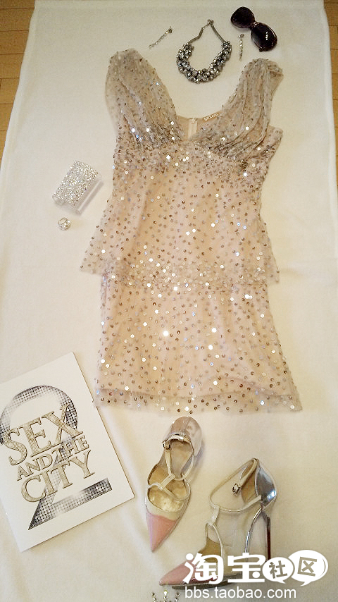 此款John Galliano的2009年走秀款亮片小洋装搭配Sergio Rossi的2007年走秀款钻石凉鞋,一共败了32000元