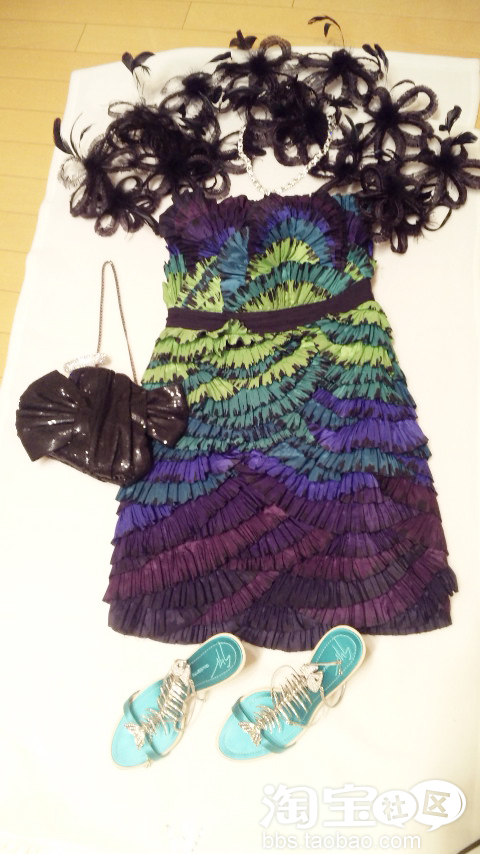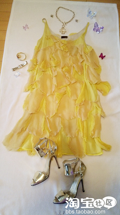 此款FENDI的2008年杂志款层层小洋装搭配GUCCI的2008年走秀款金色凉鞋,一共败了30000元。左上,