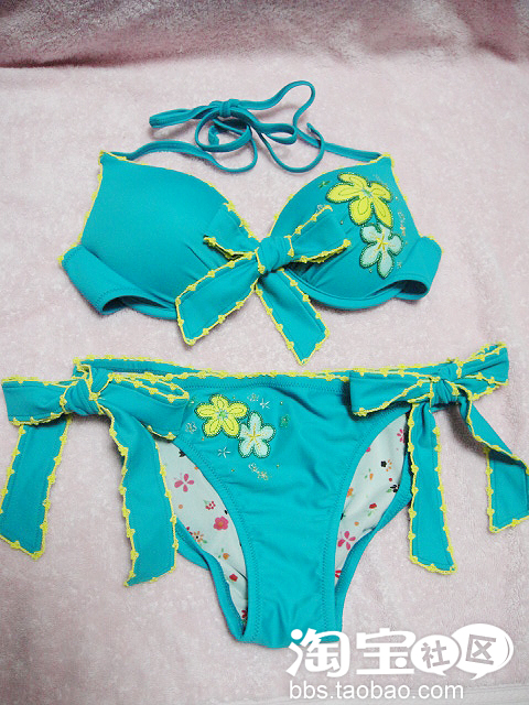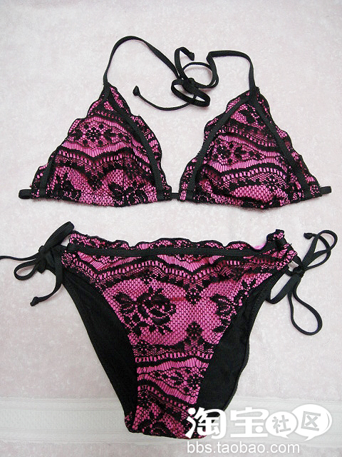 超可爱的蕾丝装饰泳衣,简洁的三角形比基尼,海边的性感女神就是你喽!爱纱败了2200元