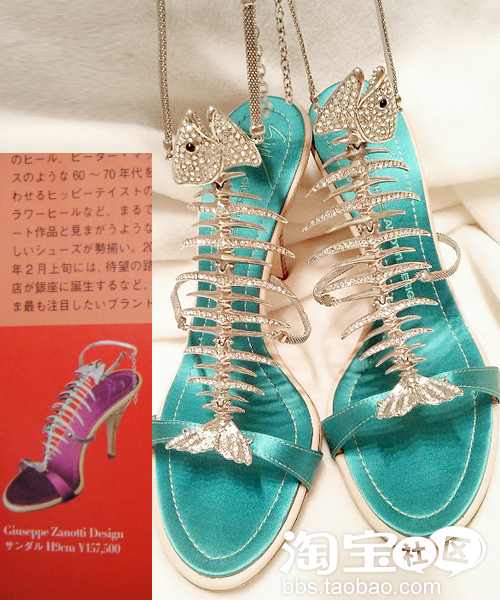 2.中,品牌GIUSEPPE ZANOTTI,鞋跟9厘米,意大利制,2008年的春夏杂志款,超闪亮鱼骨水钻露趾凉拖,奢华高贵,(欲望城市1里面瑟曼撒做寿司时穿过的)此款超级华丽,被所有明星收集,珍藏的限量版,爱纱拥有2双哦!爱纱败了13600元