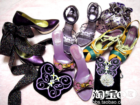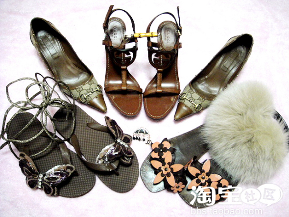 1.左上,品牌GUCCI,鞋跟7厘米,意大利制,2004年秋冬走秀款,品牌印花搭配复古的款式,80年代超流行的经典尖头设计,搭配小西装极为时尚,爱纱拥有的第一双名牌鞋子,永远的最爱!爱纱败了4000元