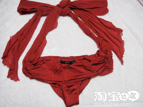 此款GUCCI的2008年春夏走秀款比基尼,超性感的绑带款式,没有上身的设计,大胆夸张,你真的敢穿它去海边吗?(爱纱一次没穿过,呵呵)爱纱败了3600元