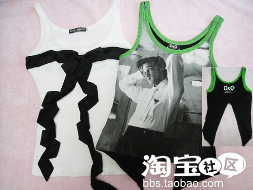 爱纱最爱的两款个性化Dolce&Gabbana吊带背心,白色背心装饰的黑色蝴蝶结超级可爱,简洁时尚,清新脱俗。个性的真空后背吊带背心,让你成为性感的美背皇后,你的背影也会让人流连忘返的哦!爱纱败了左2600元,右1800元