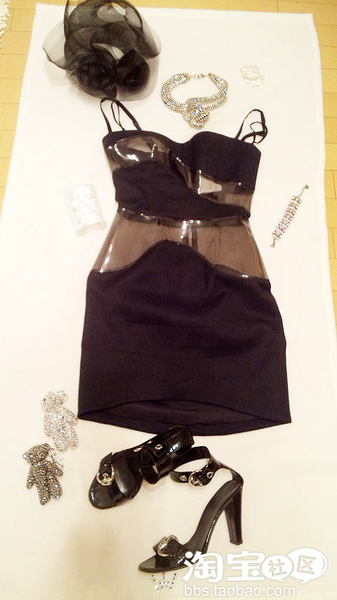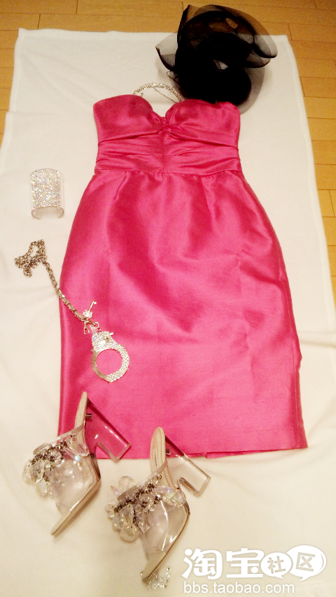 此款Dolce&Gabbana的2010年杂志款抹胸小洋装搭配PRADA的2010年走秀款大颗水晶凉拖,一共败了19000元。