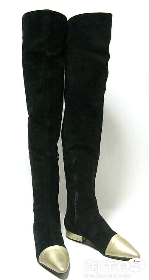 品牌GIANNI VERSACE ,鞋跟2厘米,意大利制,2010年秋冬杂志款,此款个性十足的超高筒的鹿皮美腿长靴,2厘米的低跟与精致的尖头双色搭配款式,修饰腿部线条,与超短迷你裙相搭配可爱时尚,爱纱本季逛街时最爱的长靴!爱纱败了9800元