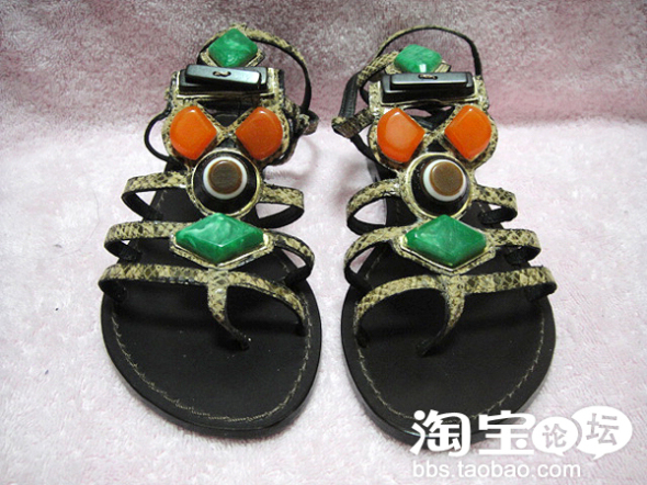 鞋跟1厘米,意大利制,此款宝石镶嵌的平底凉鞋实用可爱,质感超强的南非蛇皮搭配超大的稀有宝石,打造出此款个性与时尚的经典美鞋,此款平底凉鞋搭配飘逸长裙最为适宜,无论是海滩或是闹市街,闪耀的此款都是最亮眼的选择哦!爱纱败了2200元