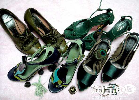 1.左上,品牌VivienneWestwood,鞋跟10厘米,意大利制,2006年秋冬走秀款,超亮眼的军绿色搭配复古式的设计,安定感超好的粗跟款式,适合搭配复古式大衣,质感超好哦!爱纱败了4800元