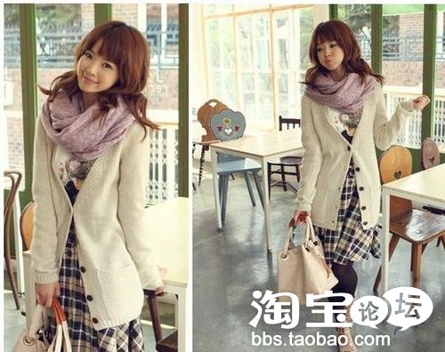 米白色的长款针织开衫想必会获得许多MM的喜欢哦,贴身的设计很适合展现MM的苗条身型,单薄但非常保暖的衣料让MM在冬日依然魅力动人,可爱味的上衣搭配田园风地方格纹单裙就已经很好看,外搭长款针织开衫更显独特魅力!