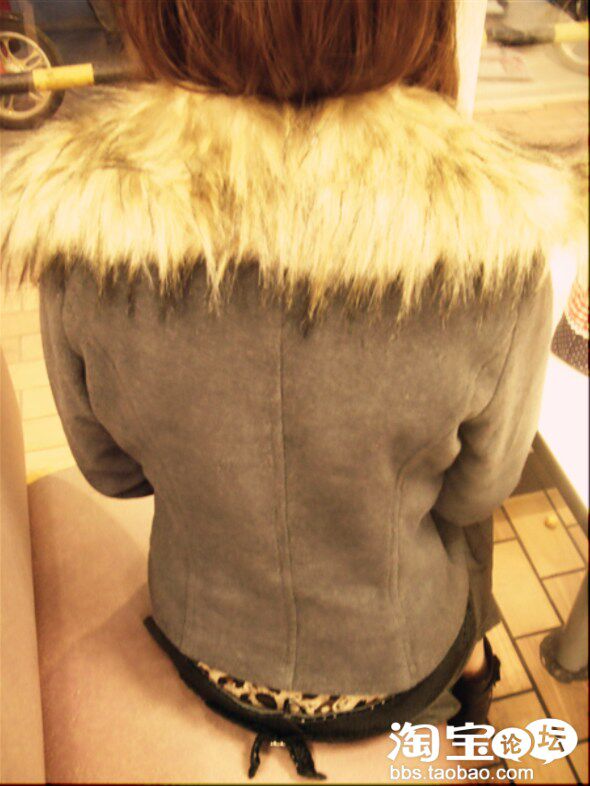 下面來上第三件哦~經典機車款奢華狐狸毛領短款大衣