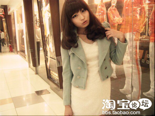 下面来上第2件,韓國正品 清新優雅淡綠色大衣外套