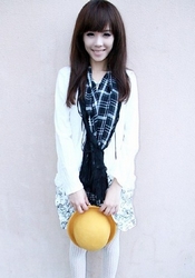 淡蓝色的衬衣,黑色的小蓬蓬裙子.典型气质型学生装束..