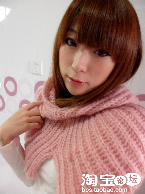 這個圍脖很特別。不過我沒戴好。後面還有一個大大的帽子。掛著毛球。很可耐喲。