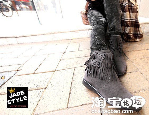 灰色的靴子我看很少MM有吧,当然这个灰今年杂志刚推荐的,搭什么都不会撞色,不同的风格。还是流苏的哦