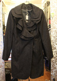 欧美秀场原单层层大荷叶边修身美型羊毛大衣