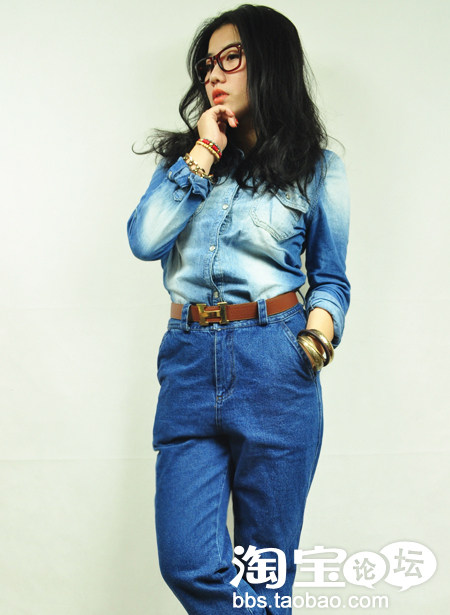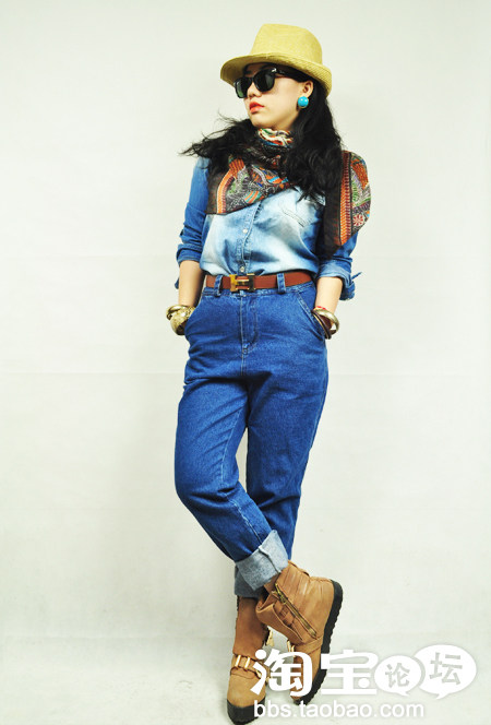 注意上下颜色的呼应,可以很牛仔可以很有女人味!