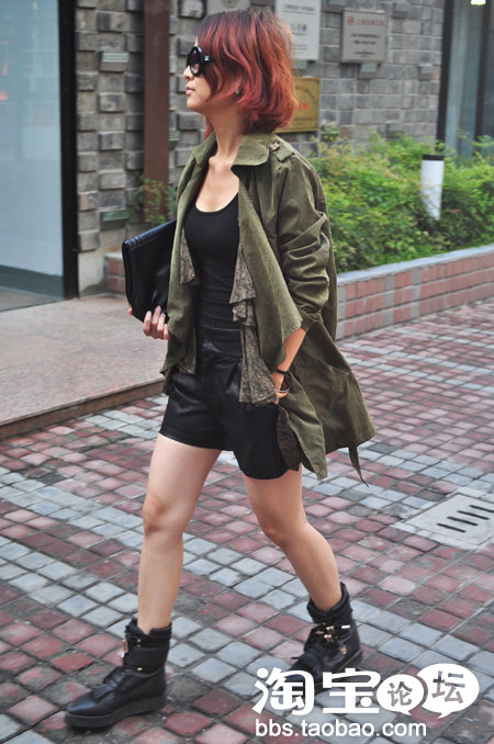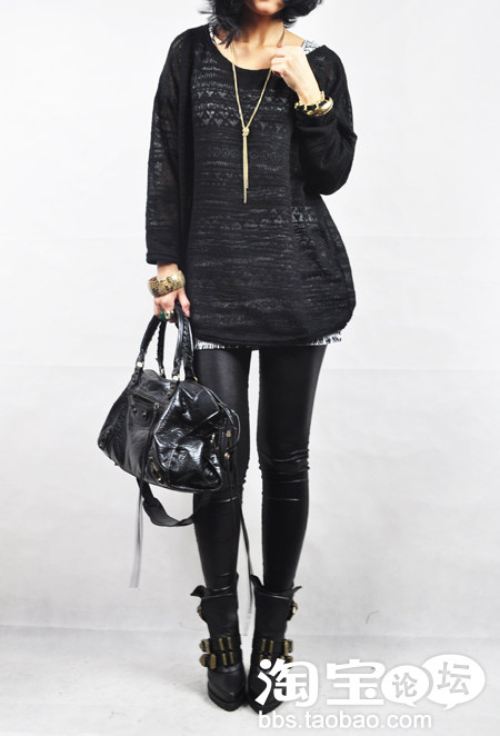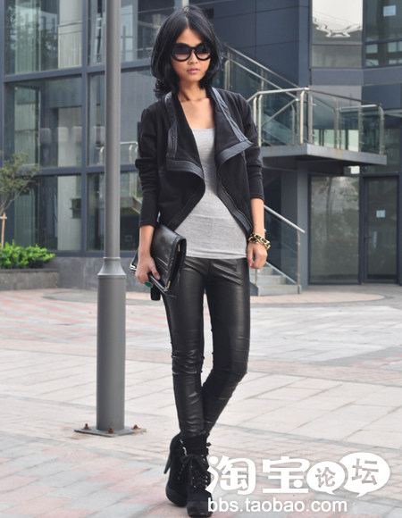 搭配拼皮打底裤,上下身相呼应,酷酷的,喜欢欧美风的美眉必备!