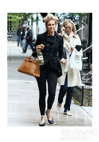 Kelly Rutherford怎么带着发卷就跑到街上来了?也太不注意形象了!不过,刨开发型不说,双排扣的计呢大衣和爱马仕的鸵鸟皮铂金包还是很有名流风范的