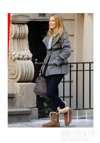 Blake Lively这件高腰的格纹大衣很有几分学生气,配合胖胖的雪地靴更让她青春洋溢,高腰线的设计美化了身材比例,而且也避免了对腰部线条的苛求,就算你冬季不小心在腰上囤积了部分赘肉也不用担心了