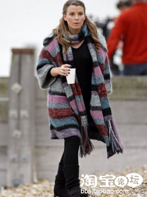 Coleen Rooney的大众搭配丽适合所有UGG的爱好者学习:常见的宽大条纹毛开衫搭配同色系围巾,黑色打底裤搭配同色系UGG编织款高筒靴;值得一提的是,这款靴子本来最最经典的款式也是黑白条纹款,许是不想让自己变成一位“条纹太太”,Coleen Rooney的选择低调又恰到好处