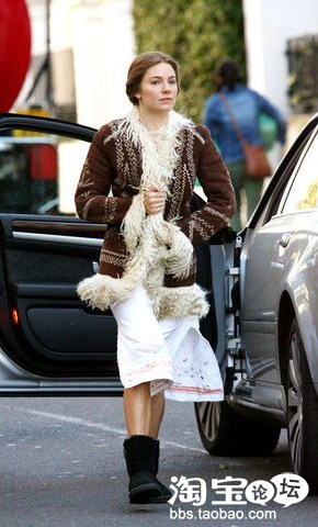 莉顿-梅斯特 (Leighton Meester)的这身搭配告诉我们:想要搭配好UGG,配饰环节不可忽视。来自Barneys New York的拼接花色短袖连衣裙加上项链的配合恰到好处;值得一提的是,用来搭配服装的项链出自美国行政人员第一品牌Ann Taylor,这些漂亮的花花都是由珍珠制成的!其实不一定要指定某个品牌,这个季节,种类繁多的胸针、毛衣链,等着你用心去挑选。
