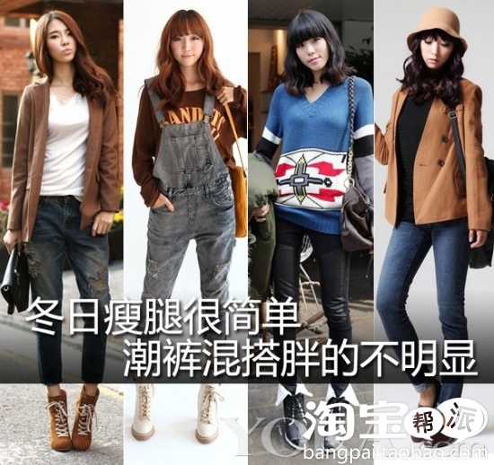 细筒的裤管最适合在冬天里搭配各种靴子了。