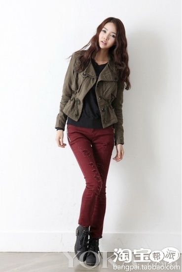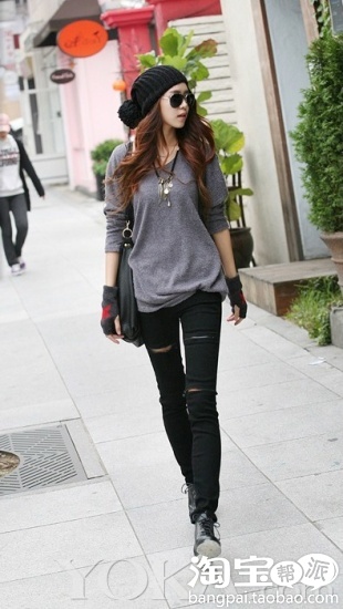 小裤脚低裆款带有点破洞跟水洗色感完美体现了艺术家奔放的气质,