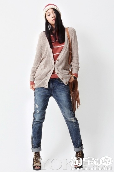 给优雅成熟的牛仔裤配一件有型有款的针织衫是很重要的事,