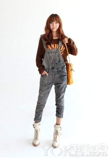 活用性很强,配上靴子卷边穿着背带裤更显休闲俏皮感觉。