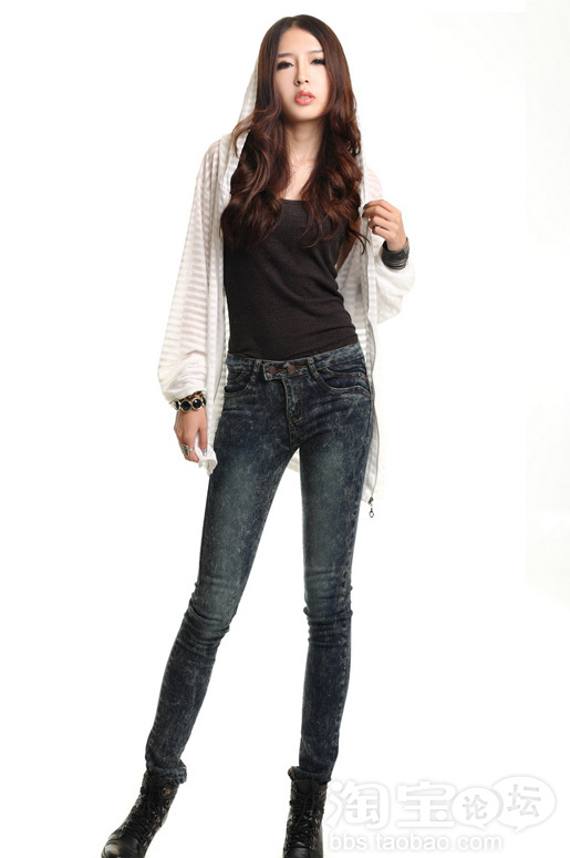 1.深色直筒牛仔裤,这个裤型不挑人,基本上胖瘦的MM 都可以穿