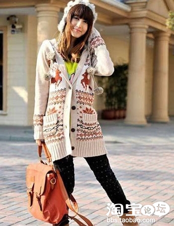 簡單的寬鬆毛衣,給人一種酷酷的感覺,可愛的翻邊兜兜設計,搭配上塌肩的設計,裝扮輕鬆隨意的休閑氣質美女。