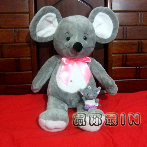 看看他有多小吧。坐在老鼠dd的腿上。对了,他肚子上有个按钮,一按就会叫“Haha,I LOVE U”,非常嗲的。