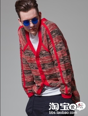 艳色对于现在的型男来说已经不是什么禁忌了,红色在男性身上本身就体现了另一种美,对襟线的独特设计更能展现男人的**,喜欢艳色的可以考虑入手一件此类毛衫。