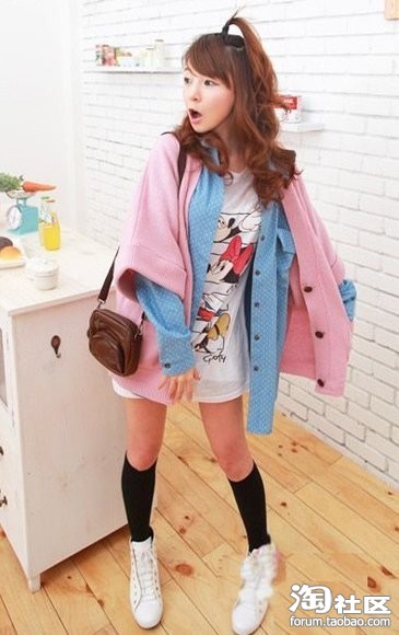 韩式短袖宽大毛衣,是MM的最爱,还适合怕臃肿的MM穿搭的