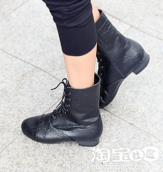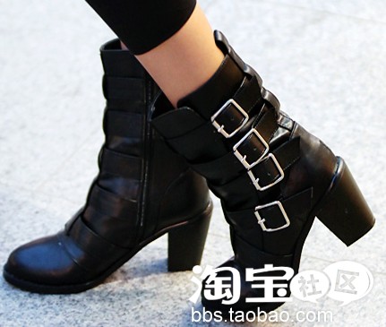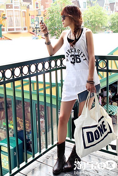 黑色火爆带扣式军靴 + 长版印字T恤 + 大包包