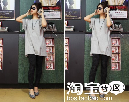 牛仔单宁鞋 +黑色打底裤 + 韩版宽松外套