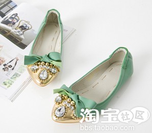 宝石串珠蝴蝶结时尚单鞋/ 也是亲时尚的选择