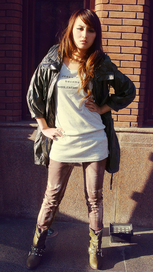 铆钉靴子的颜色与上衣的颜色相呼应~