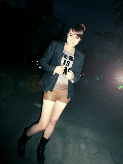 皮短裤有很强烈的扩展感 穿不好 就会有很臃肿的感觉 所以哦