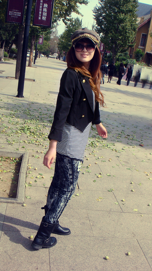 和链饰的帽子搭配在一起 强烈的英伦范儿 学院派