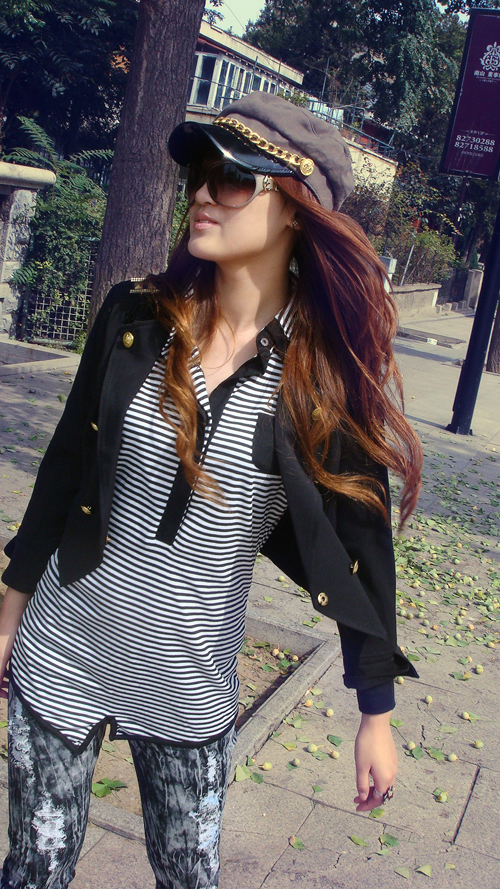 看起来很像是穿可男朋友的衣服出门吧?哈哈