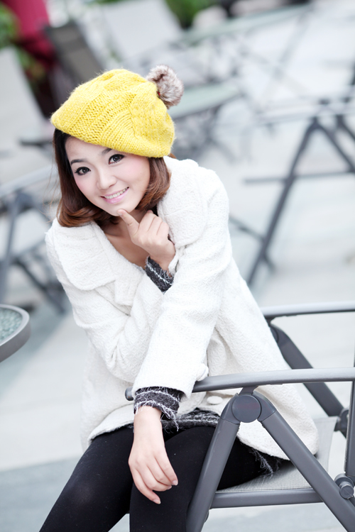 短款白色兔毛小外套,显现了小女人俏皮的一面。