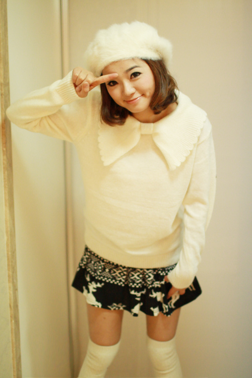 甜美的可人儿装扮,柔软的针织衫、宽松的T恤裙、复古感十足的高腰裤等等都会让你看起来超级柔美,搭配保暖又不失时尚的围巾,帽子。不但能为你赢得亲和力和好感度,