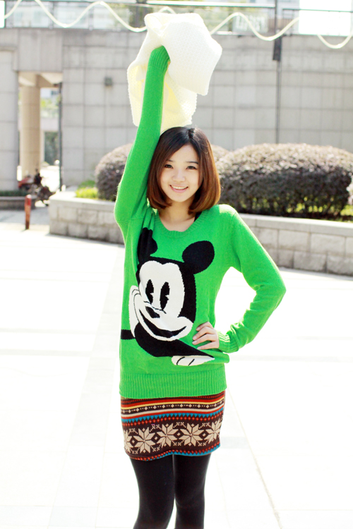 大大的卡通米奇图案,透露出丝丝可爱与时尚并存的气息,