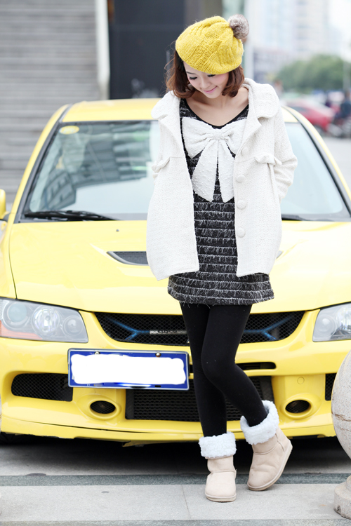 胸前大大的蝴蝶结很有公主气质,刚好与外套的风格相映成彰。再搭配一双UGG让你甜美十足!