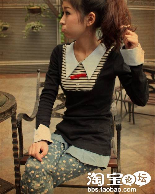 NO.2 韩国小海军蝴蝶结长t+超短裙裤+波点打底裤+短靴