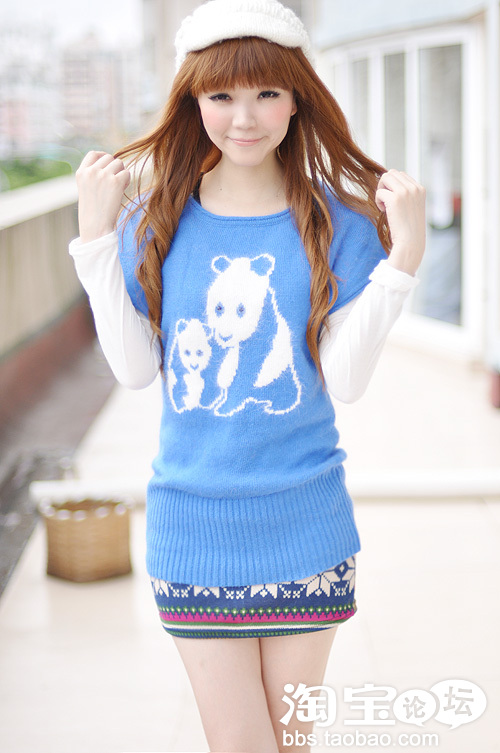 配搭黑色的毛线裙~就比较活泼了~秋天的款式最好都搭配帽子和袜套