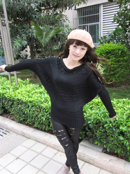 NO9:镂空毛线蝙蝠衫,可以很性感的搭配