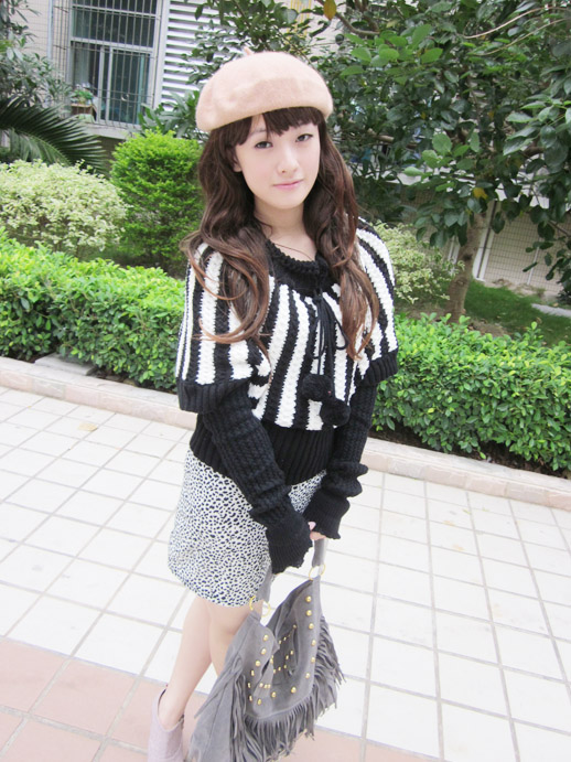 黑白条纹蝙蝠袖毛衣,今年蝙蝠袖衫依然是主流