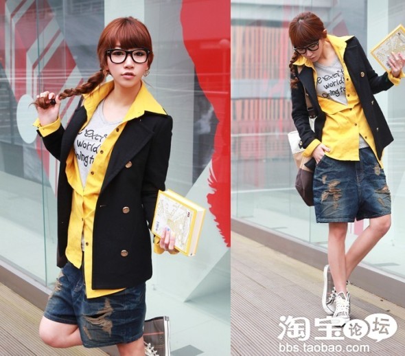 搭配一条短款宽松牛仔裤又是一种休闲学院气息~~